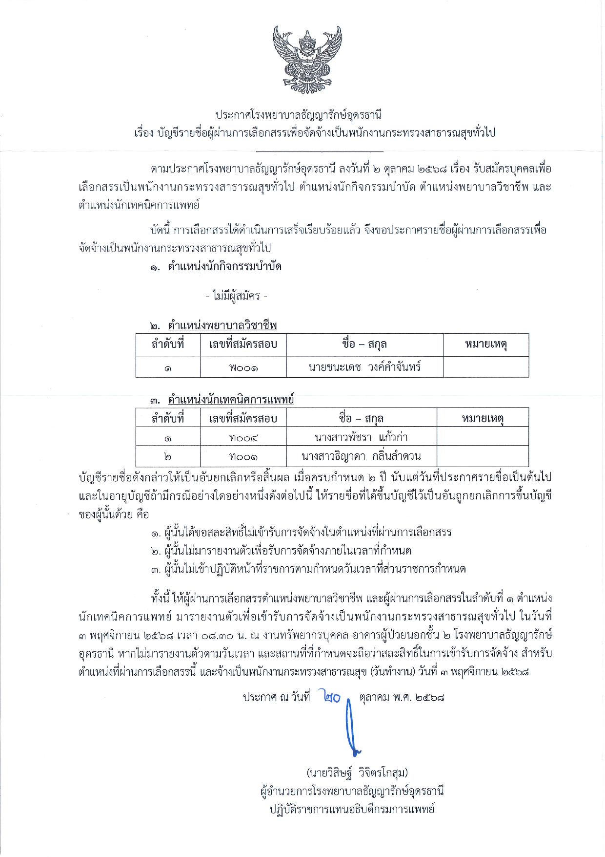 ประกาศรายชื่อผู้สอบผ่านการเลือกสรรบุคคลเป็นพนักงานกระทรวงสาธารณสุข ตำแหน่งนักกิจกรรมบำบัด พยาบาลวิชาชีพ และนักเทคนิคการแพทย์ //20 ตุลาคม 2568