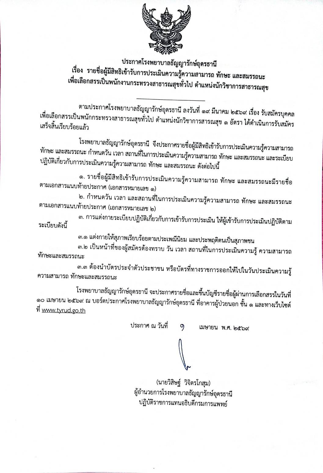 ***ประกาศรายชื่อผู้มีสิทธิเข้ารับการประเมินความรู้ความสามารถ ทักษะ และสมรรถนะ เพื่อเลือกสรรเป็นพนักงานกระทรวงสาธารณสุขทั่วไป ตำแหน่ง นักวิชาการสาธารณสุข // 1 เมษายน 2569