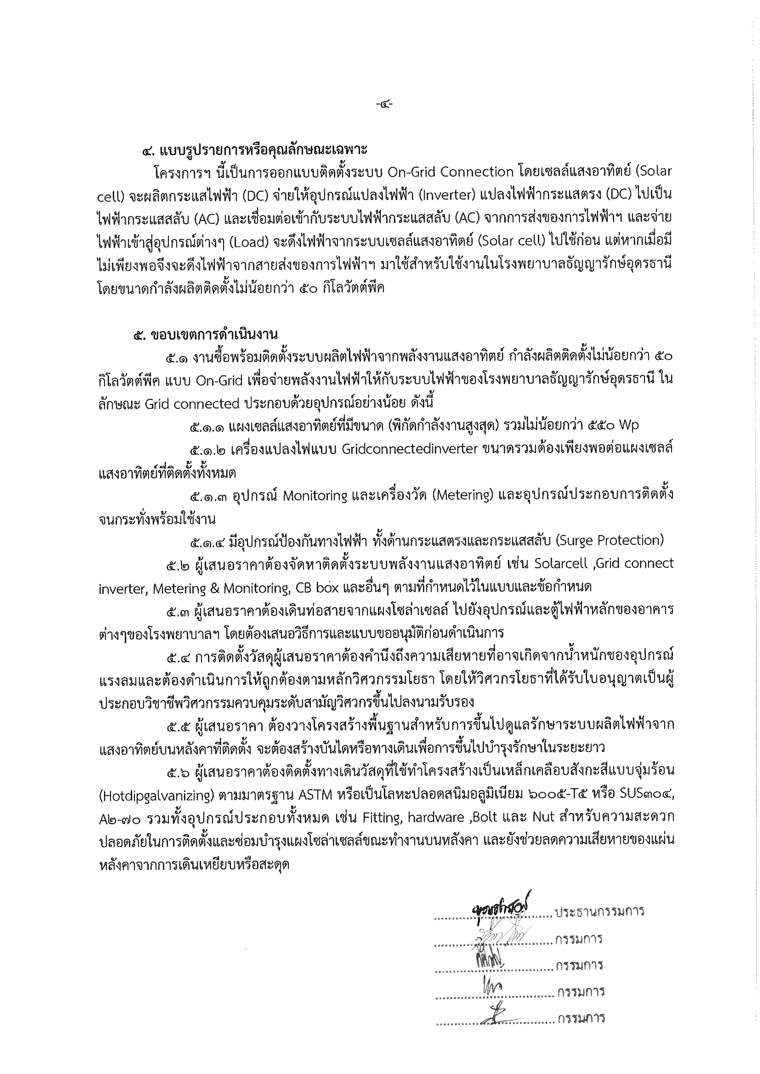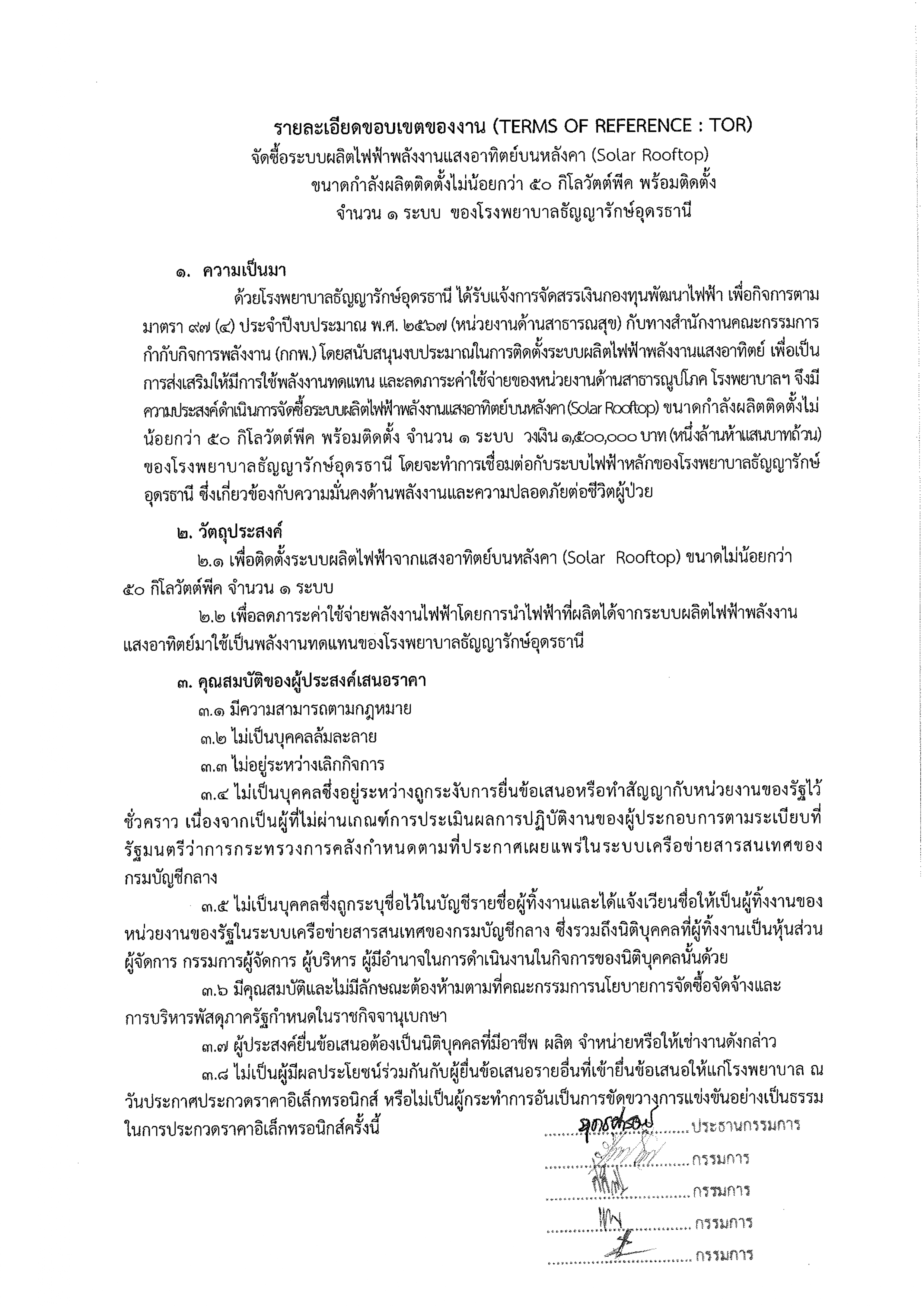 ขอบเขตของงาน จัดซื้อระบบผลิตไฟฟ้าพลังงานแสงอาทิตย์แบบติดตั้งบนหลังคา (Solar Rooftop) ขนาดกำลังการผลิตติดตั้งไม่น้อยกว่า 50 กิโลวัตต์พีค พร้อมติดตั้งจำนวน 1 ระบบ ของโรงพยาบาลธัญญารักษ์รักษ์อุดรธานี //19 กันยายน 2568
