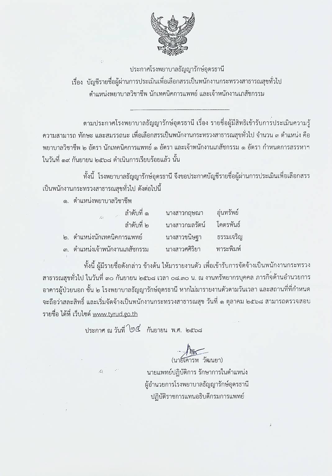 ***ประกาศบัญชีรายชื่อผู้ผ่านการประเมินพื่อเลือกสรรเป็นพนักงานกระทรวงสาธารณสุขทั่วไป ตำแหน่ง พยาบาลวิชาชีพ นักเทคนิคการแพทย์ เจ้าพนักงานเภสัชกรรม // 24 กันยายน 2568