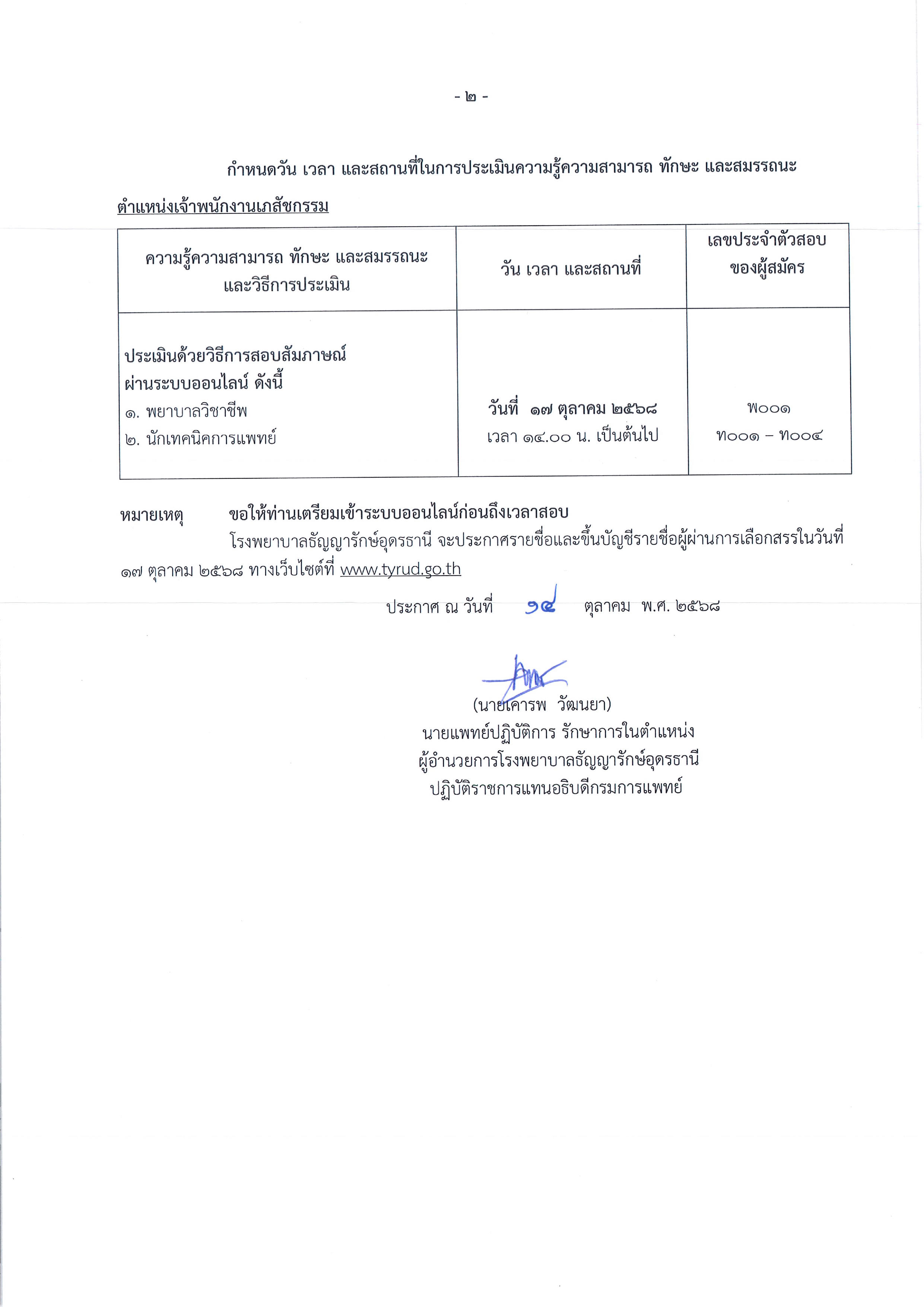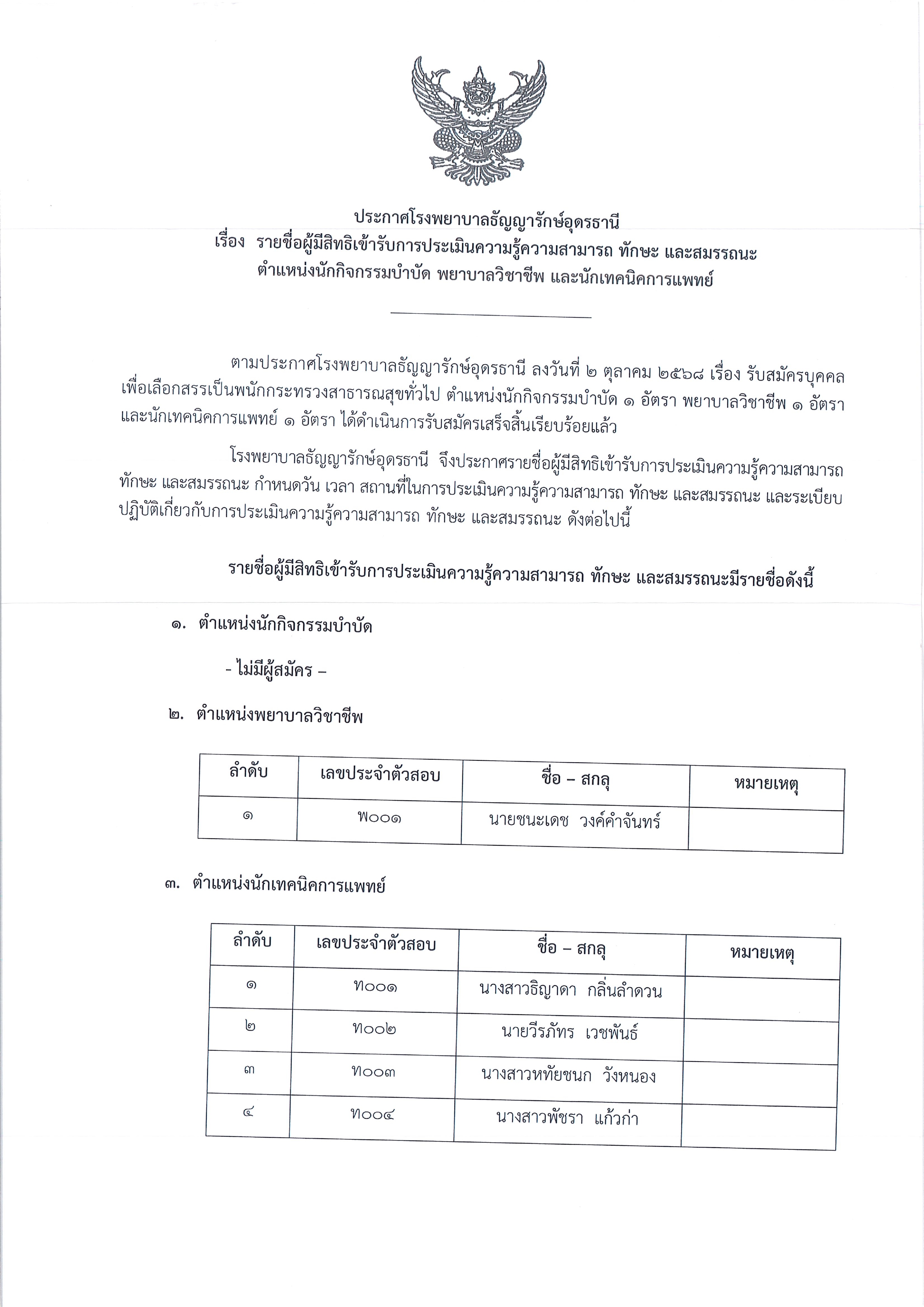 ***ประกาศรายชื่อผู้มีสิทธิเข้ารับการประเมินความรู้ ความสามารถ ทักษะ และสมรรถนะ ตำแหน่งนักกิจกรรมบำบัด พยาบาลวิชาชีพ นักเทคนิคการแพทย์ // 14 ตุลาคม 2568