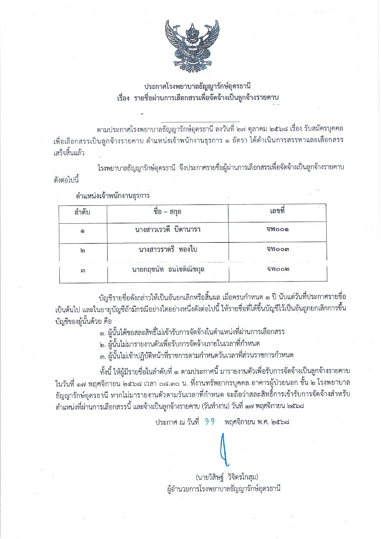 ประกาศรายชื่อผู้ผ่านการเลือกสรรเพื่อจัดจ้างเป็นลูกจ้างรายคาบ ตำแหน่งเจ้าพนักงานธุรการ //11 พฤศจิกายน 2568