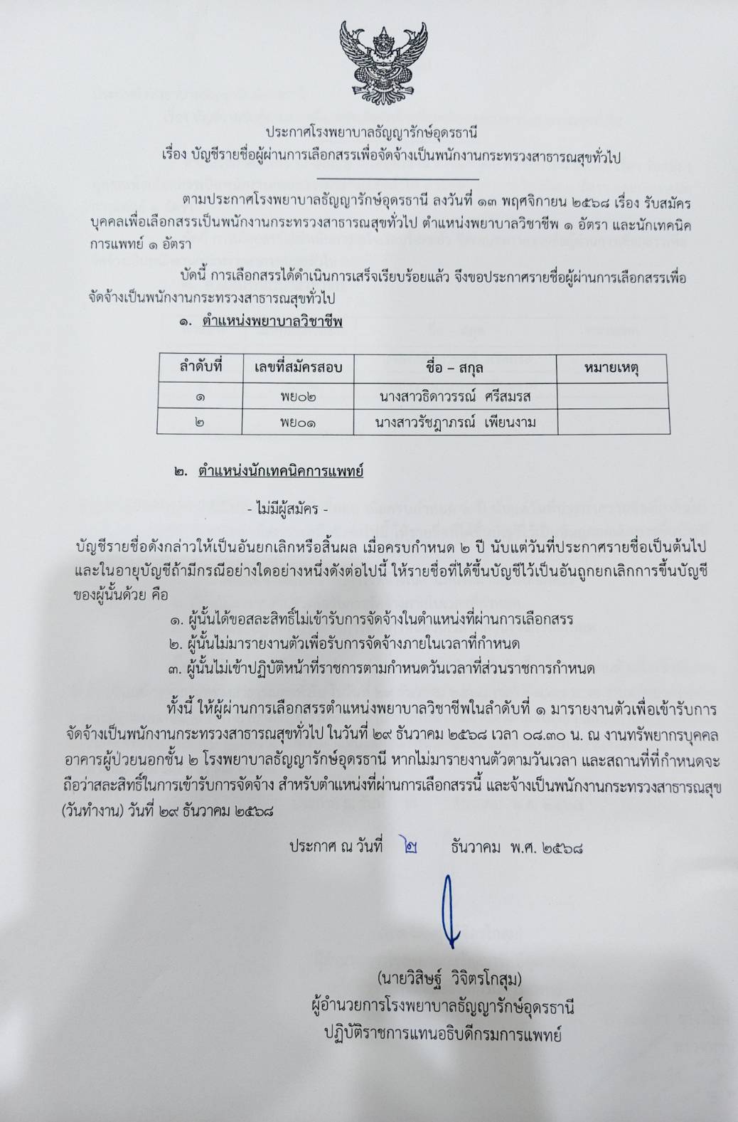 ประกาศบัญชีรายชื่อผู้ผ่านการเลือกสรรเพื่อจัดจ้างเป็นพนักงานกระทรวงสาธารณสุขทั่วไป //02 ธันวาคม 2568