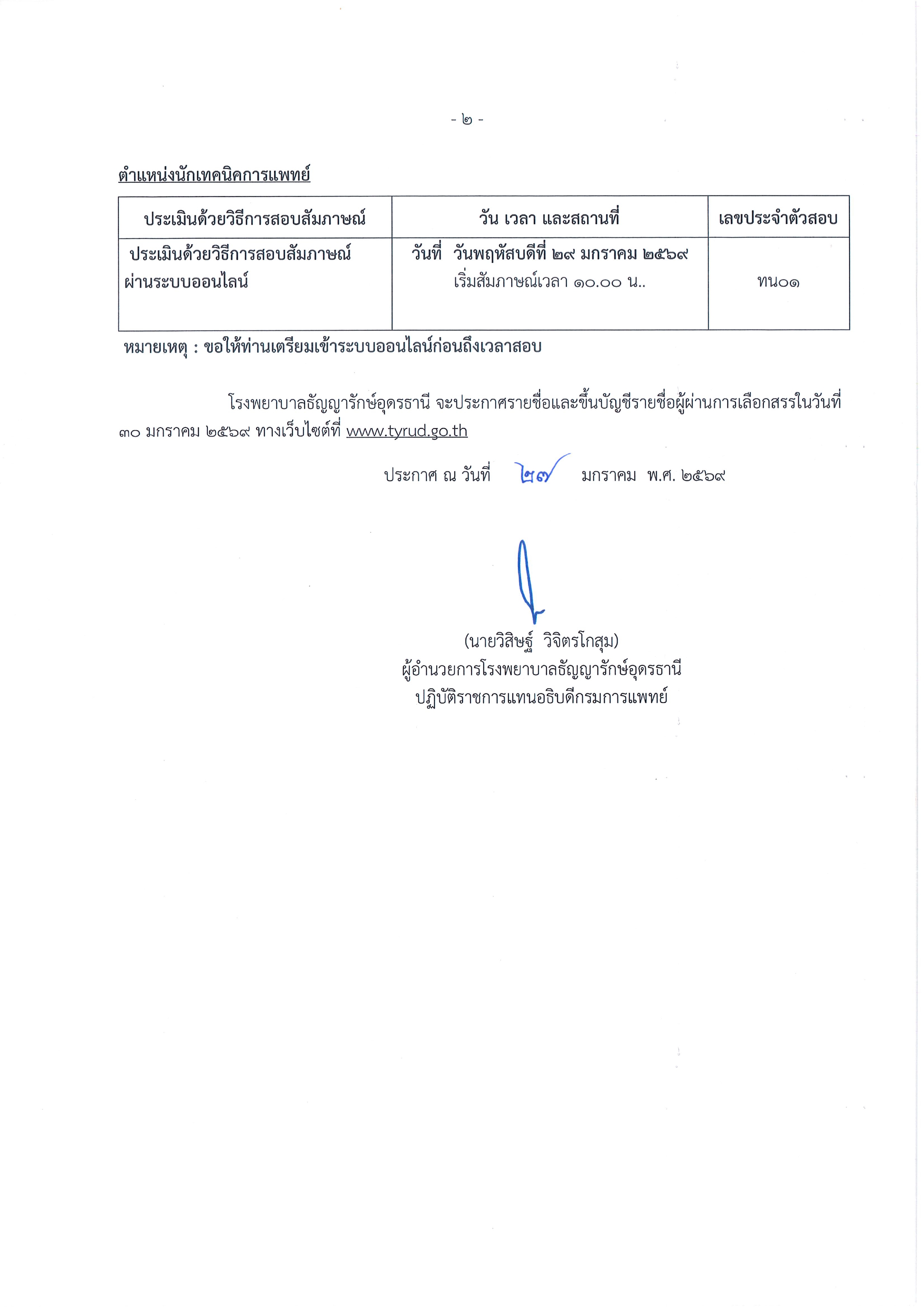 ***ประกาศรายชื่อผู้มีสิทธิเข้ารับการประเมินความรู้ ความสามารถ ทักษะ และสมรรถนะ เพื่อเลือกสรรเป็นพนักงานกระทรวงสาธารณสุขทั่วไป ตำแหน่งพยาบาลวิชาชีพ และนักเทคนิคการแพทย์ // 27 มกราคม 2569