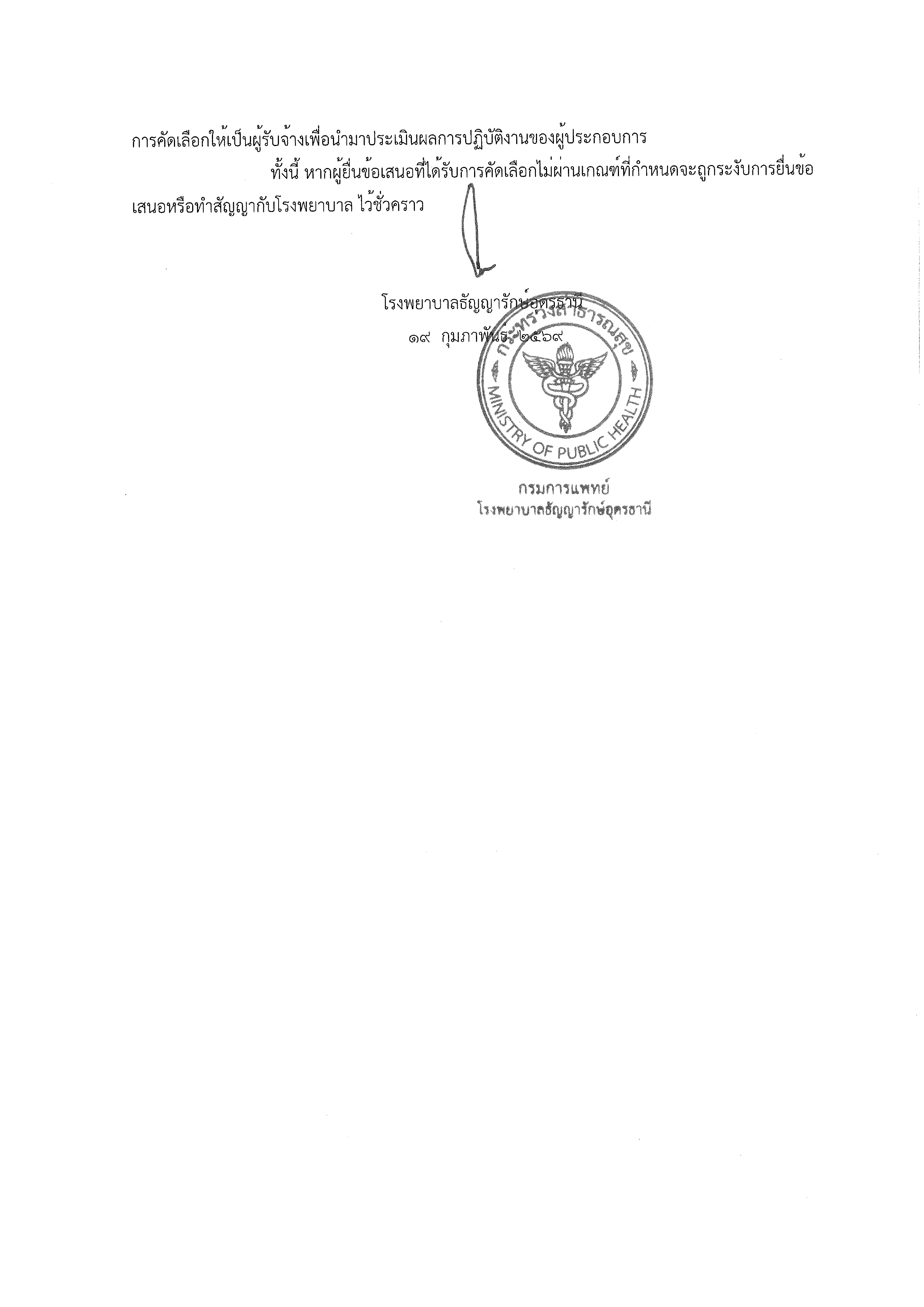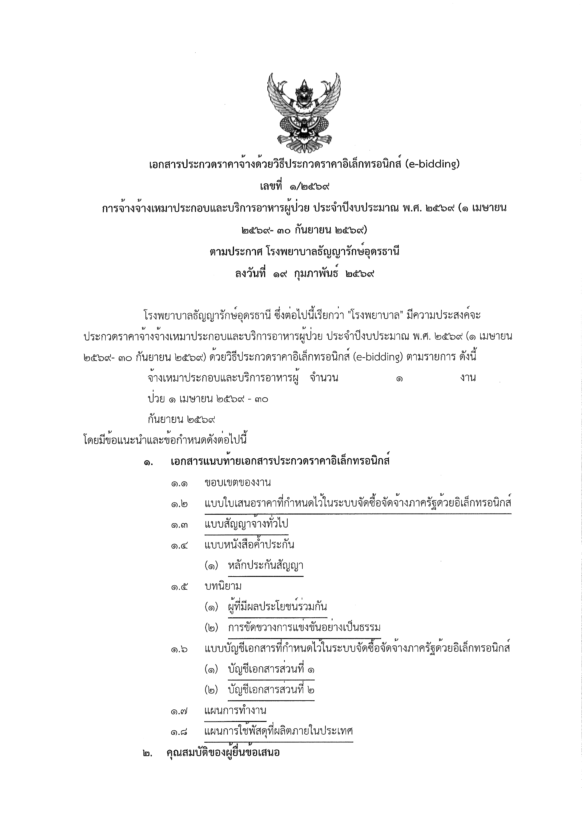 ประกาศโรงพยาบาลธัญญารักษ์อุดรธานี เรื่อง ประกวดราคาจ้างจ้างเหมาบริการทำความสะอาดอาคารสถานที่ โรงพยาบาลธัญญารักษ์อุดรธานี ประจำปีงบประมาณ 2569 วันที่ 1 เมษายน 2569- 30 กันยายน 2569 ด้วยวิธีประกวดราคาอิเล็กทรอนิกส์(e-bidding)// 19กุมภาพันธ์ 2569