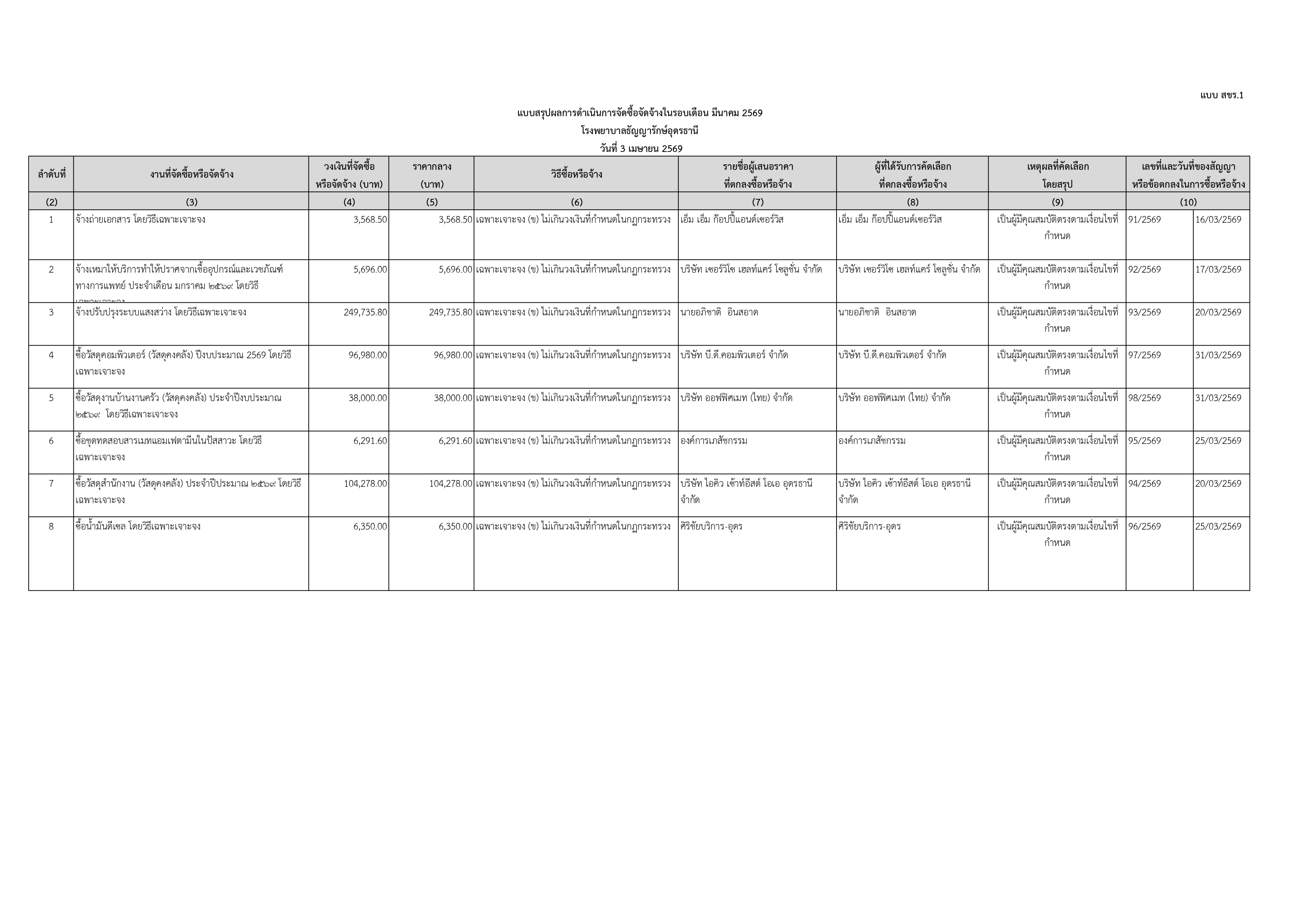 แบบสรุปผลการดาเนินการจัดซื้อจัดจ้างในรอบเดือน มีนาคม 2569