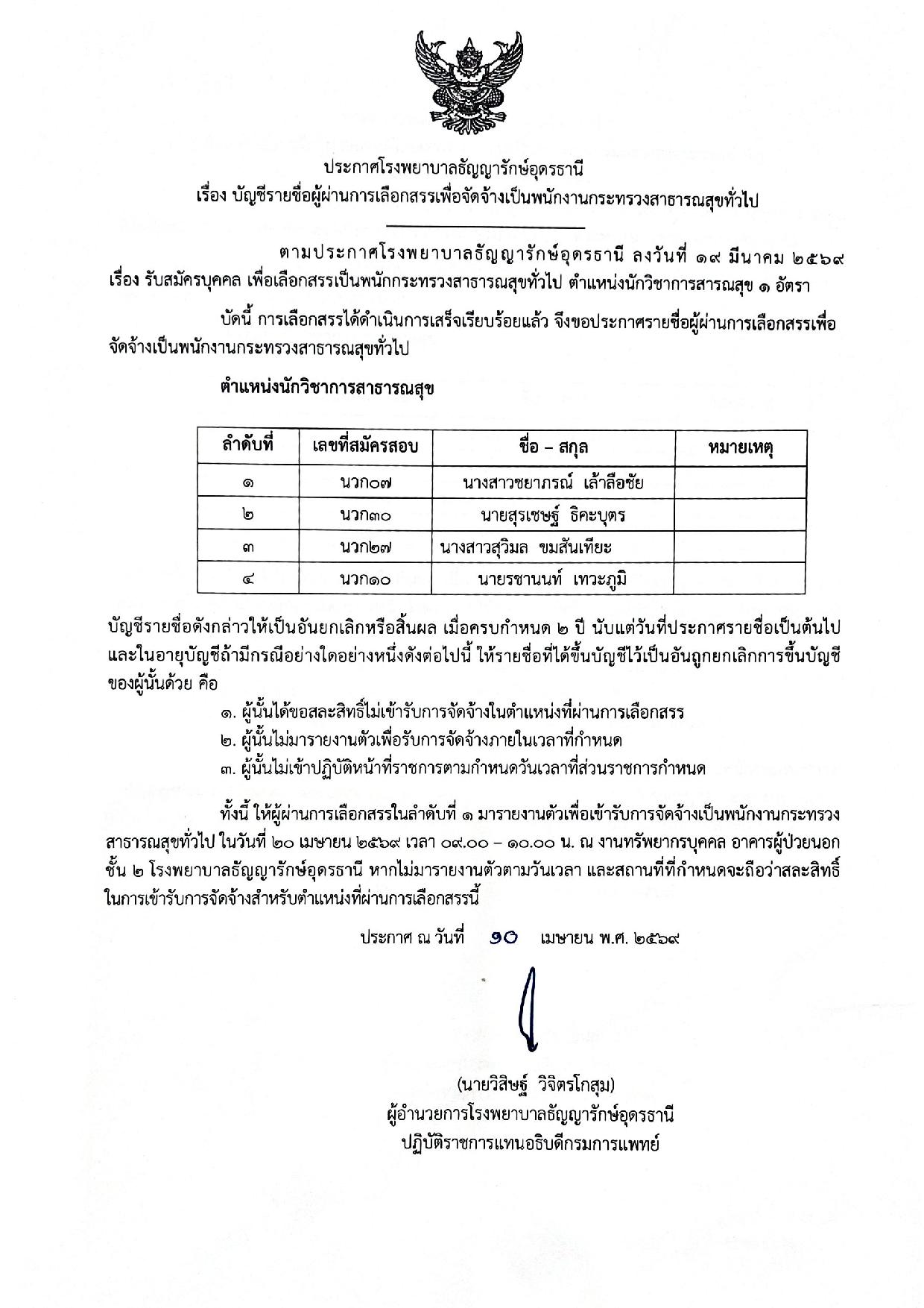 ประกาศบัญชีรายชื่อผู้ผ่านการเลือกสรรเพื่อจัดจ้างเป็นพนักงานกระทรวงสาธารณสุขทั่วไป //10 เมษายน 2569